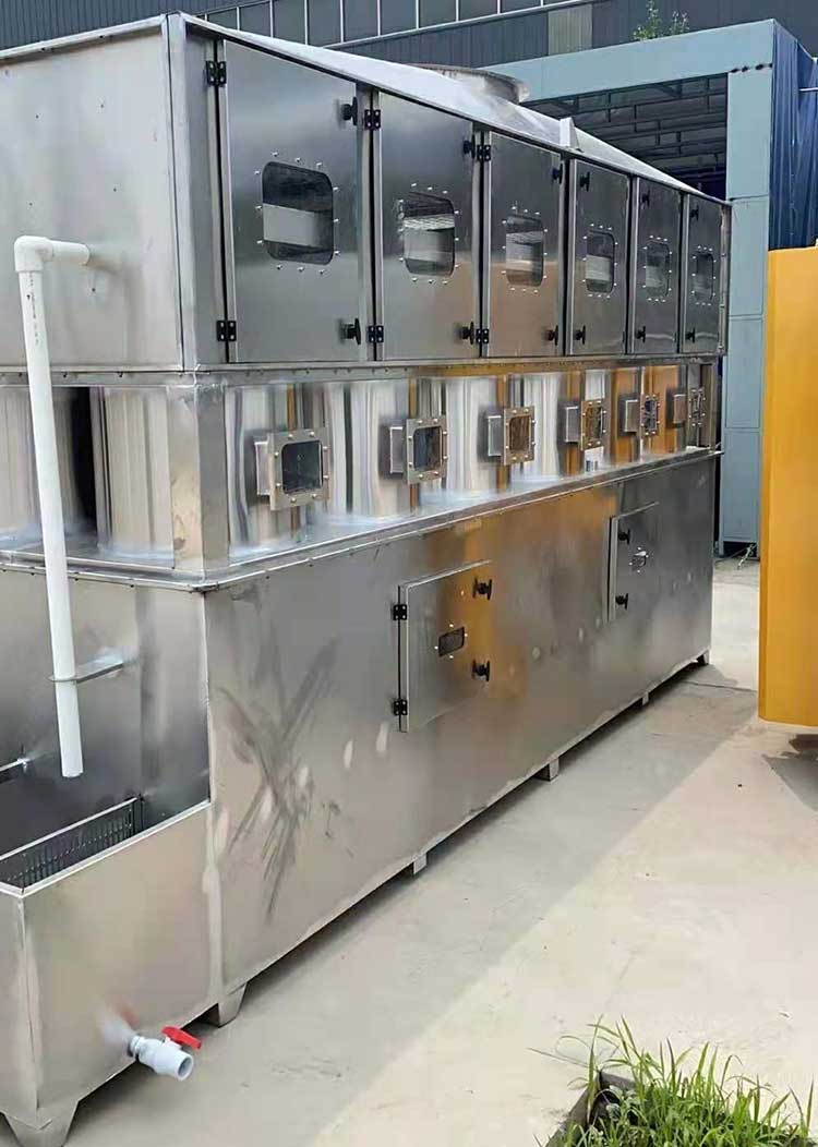 方形旋流凈化塔對有機廢氣的治理是基于原有圓形噴淋塔的原理,自主研發的噴淋凈化效果更為高效的噴淋塔預處理設備。該設備能有效去除氯化氫氣體(HCl)、氟化氫氣體(HF)、氨氣(NH3)、硫酸霧(H2SO4)、鉻酸霧(CrO3)、氰氫酸氣體(HCN)、堿蒸氣(NaOH)、硫化氫氣體(H2S)、福爾馬林(HCHO)等水溶性氣體。
