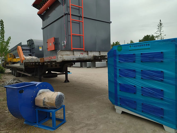 ***種:L3.1*W1.15*H1.3(m),1.5mm鍍鋅板制作,外表噴塑。共8個活性炭抽屜,320塊(L10*W10*H10)活性炭磚。進風口一道玻纖過濾網,出風口一道活性炭過濾棉。活性炭碘值400。