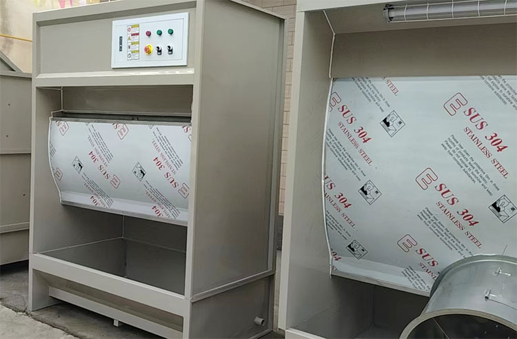 L1.5*W0.9*H2.1(m),面板1.0厚鍍鋅板噴塑,水池1.5mm鍍鋅板噴塑。水簾201不銹鋼。一層噴淋,一層浮球。電控箱一個。水泵一個,風機1臺。