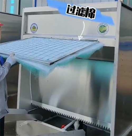 2、使用干式除塵時,砂輪機距離局部扇風(fēng)機遠(yuǎn)近不同,距離遠(yuǎn)的砂輪機除塵效果不理想,且風(fēng)道容易堵塞.局部扇風(fēng)機噪聲大,電耗多。新款水式除塵柜帶有可調(diào)節(jié)支架,打磨產(chǎn)生的粉塵一部分隨支架上水槽流入水池,另一部分直接通過水簾吸附凈化。