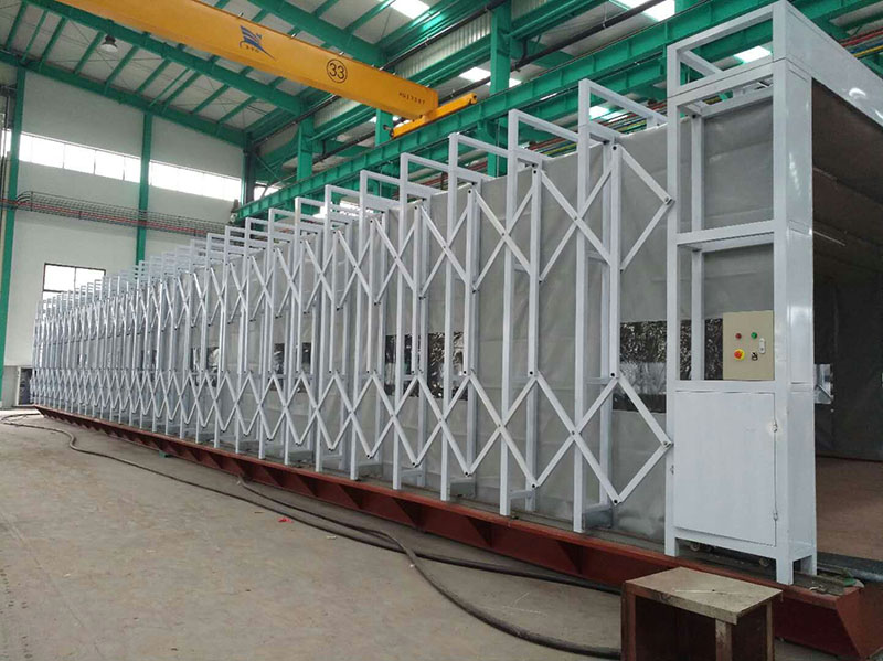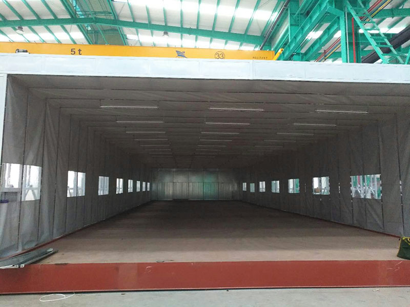 ***種是移動伸縮式噴漆房,伸縮房一端固定,固定端可配置粉塵收集回收設備或者漆霧收集處理設備,另一端伸縮,方便工件來回運轉。工件準備時,伸縮房收縮;工件到達伸縮房內***區域,伸縮房伸展;噴漆工作完成后,收縮房體,工件移出。此種伸縮房是現在使用***多的伸縮房,其長寬高根據企業的實際情況定制。