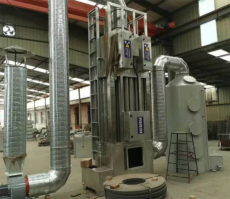 2.高壓靜電場(chǎng)電壓可以達(dá)到35KV以上,電暈電流50mA以上對(duì)于極微小的粉塵和油霧顆粒捕捉能力很強(qiáng)。排放氣體為較淡的蒸汽,無(wú)異味。